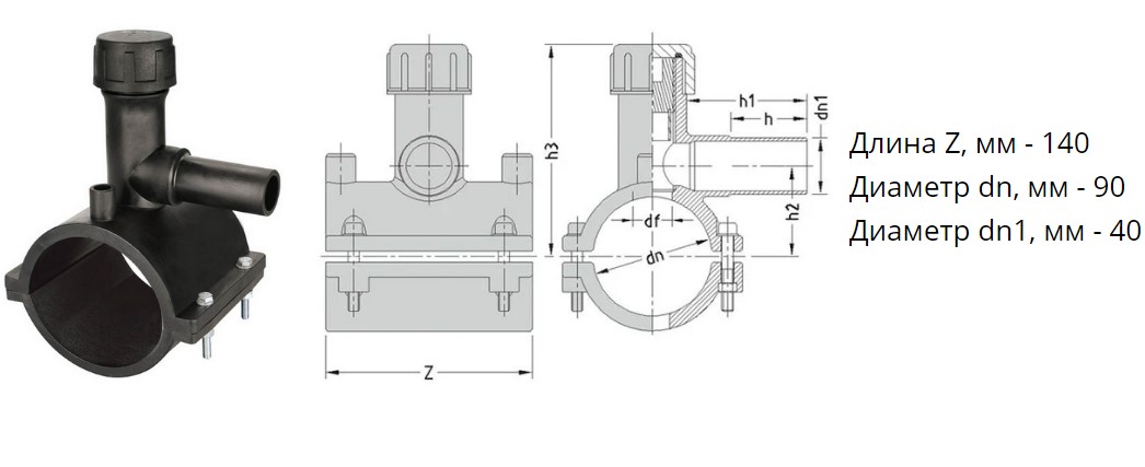 Седелка с фрезой э/с 90х40 мм SDR11 ПЭ100 электросварная для врезки под давлением ПНД труб