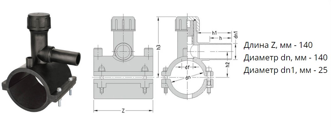 Седелка с фрезой э/с 140х25 мм SDR11 ПЭ100 электросварная для врезки под давлением ПНД труб