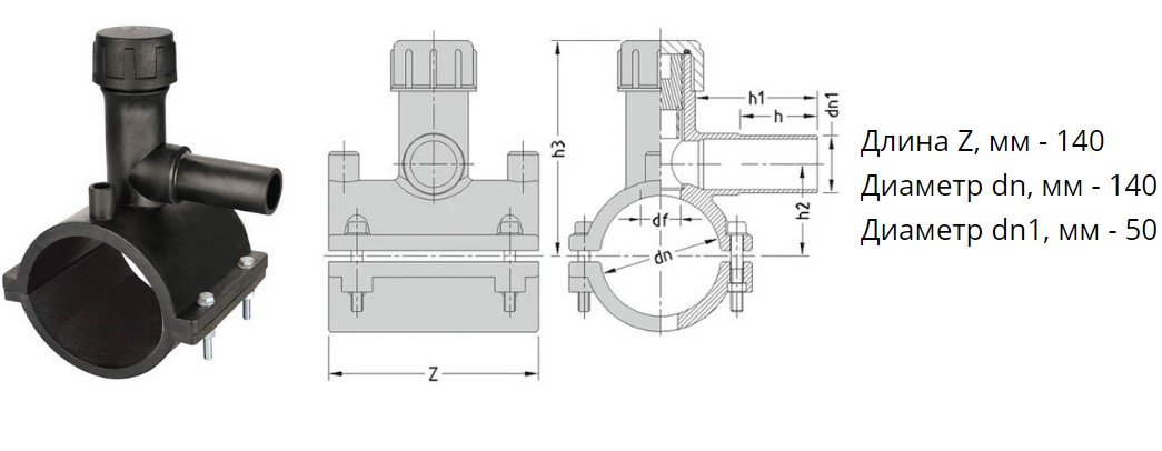 Седелка с фрезой э/с 140х50 мм SDR11 ПЭ100 электросварная для врезки под давлением ПНД труб