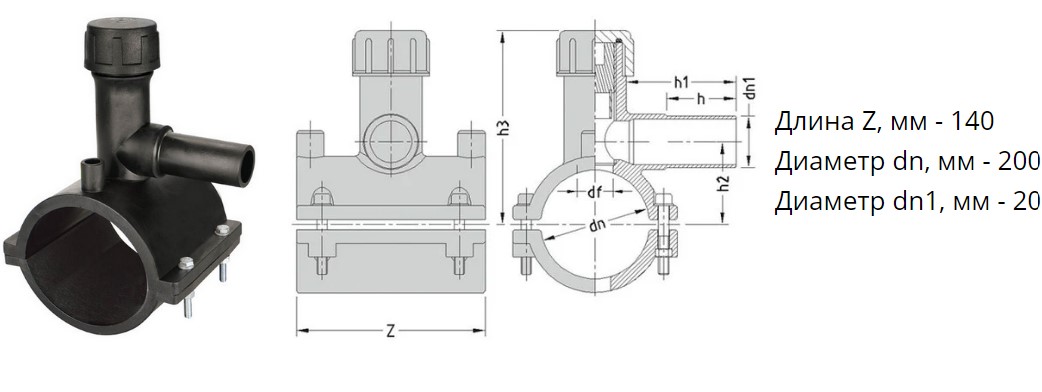 Седелка с фрезой э/с 200х20 мм SDR11 ПЭ100 электросварная для врезки под давлением ПНД труб