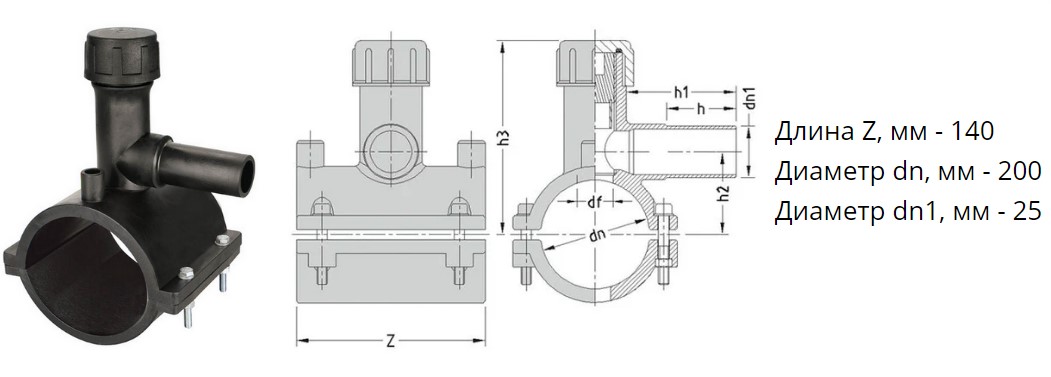 Седелка с фрезой э/с 200х25 мм SDR11 ПЭ100 электросварная для врезки под давлением ПНД труб