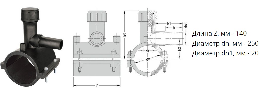 Седелка с фрезой э/с 250х20 мм SDR11 ПЭ100 электросварная для врезки под давлением ПНД труб