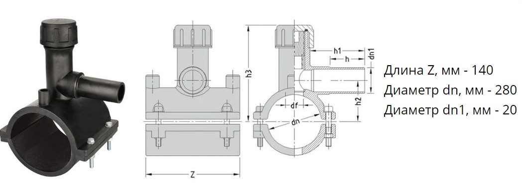 Седелка с фрезой э/с 280х20 мм SDR11 ПЭ100 электросварная для врезки под давлением ПНД труб
