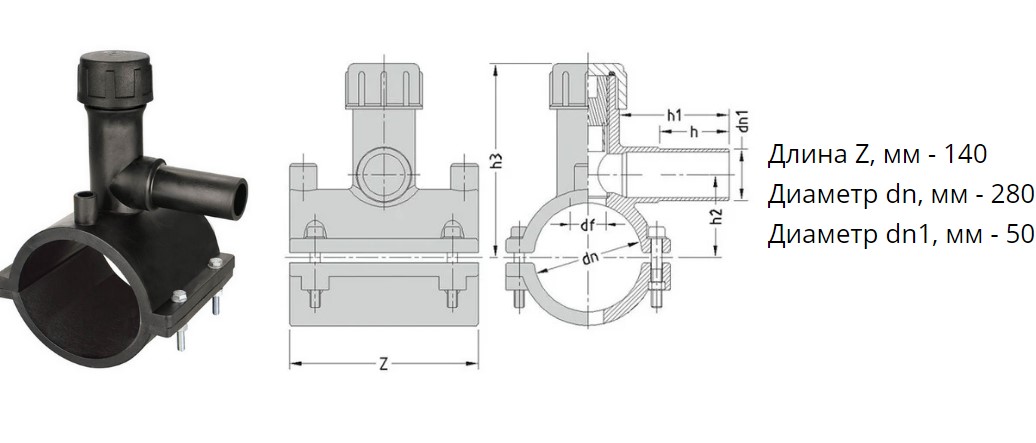 Седелка с фрезой э/с 280х50 мм SDR11 ПЭ100 электросварная для врезки под давлением ПНД труб