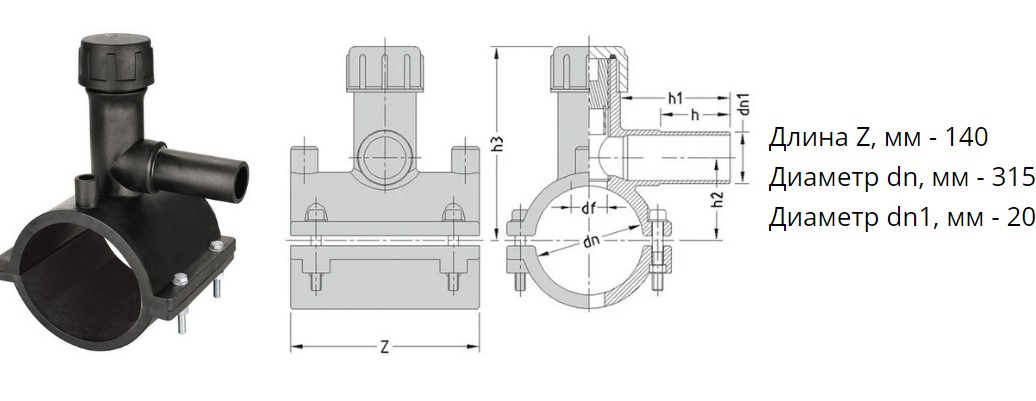 Седелка с фрезой э/с 315х20 мм SDR11 ПЭ100 электросварная для врезки под давлением ПНД труб