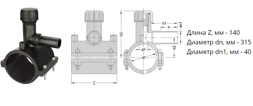 Седелка с фрезой э/с 315х40 мм SDR11 ПЭ100 электросварная для врезки под давлением ПНД труб