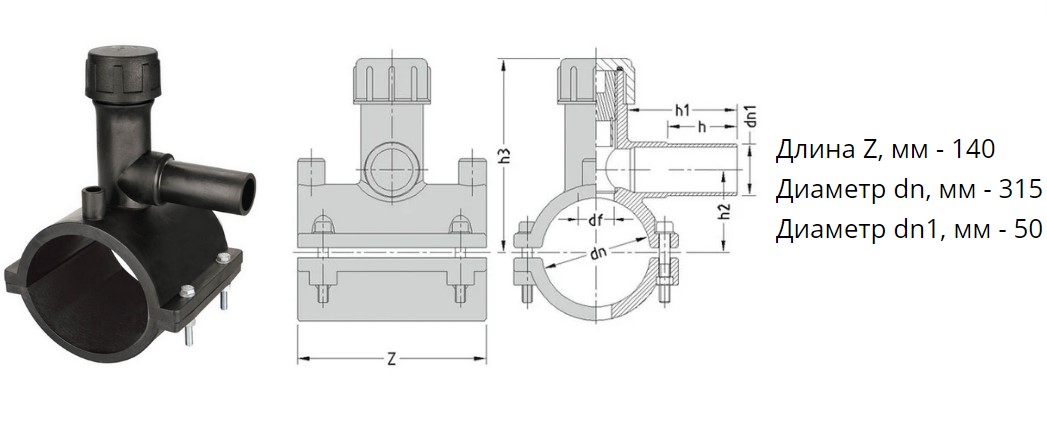 Седелка с фрезой э/с 315х50 мм SDR11 ПЭ100 электросварная для врезки под давлением ПНД труб