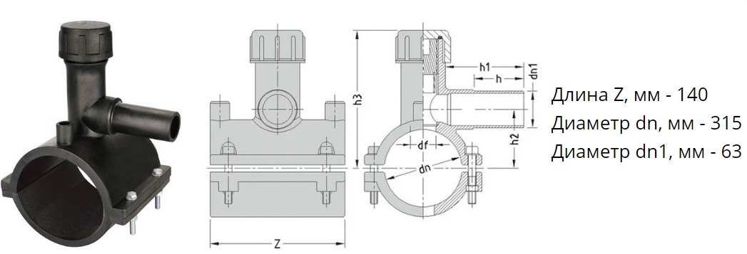 Седелка с фрезой э/с 315х63 мм SDR11 ПЭ100 электросварная для врезки под давлением ПНД труб