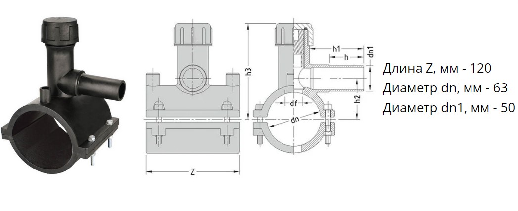 Седелка с фрезой э/с 63х50 мм SDR11 ПЭ100 электросварная для врезки под давлением ПНД труб