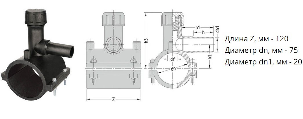 Седелка с фрезой э/с 75х20 мм SDR11 ПЭ100 электросварная для врезки под давлением ПНД труб