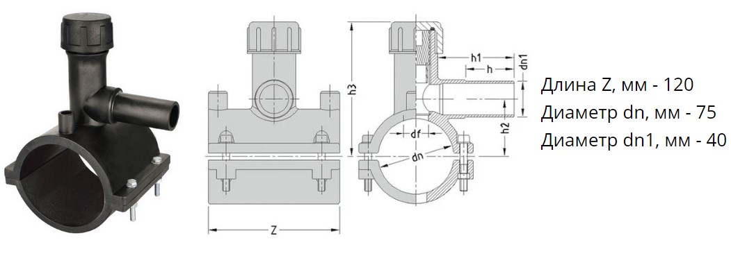 Седелка с фрезой э/с 75х40 мм SDR11 ПЭ100 электросварная для врезки под давлением ПНД труб
