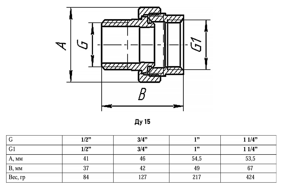 Сгон прямой VALFEX VF.340 ВР-НР 1/2" Ду 15 Ру 40 разъёмный латунный