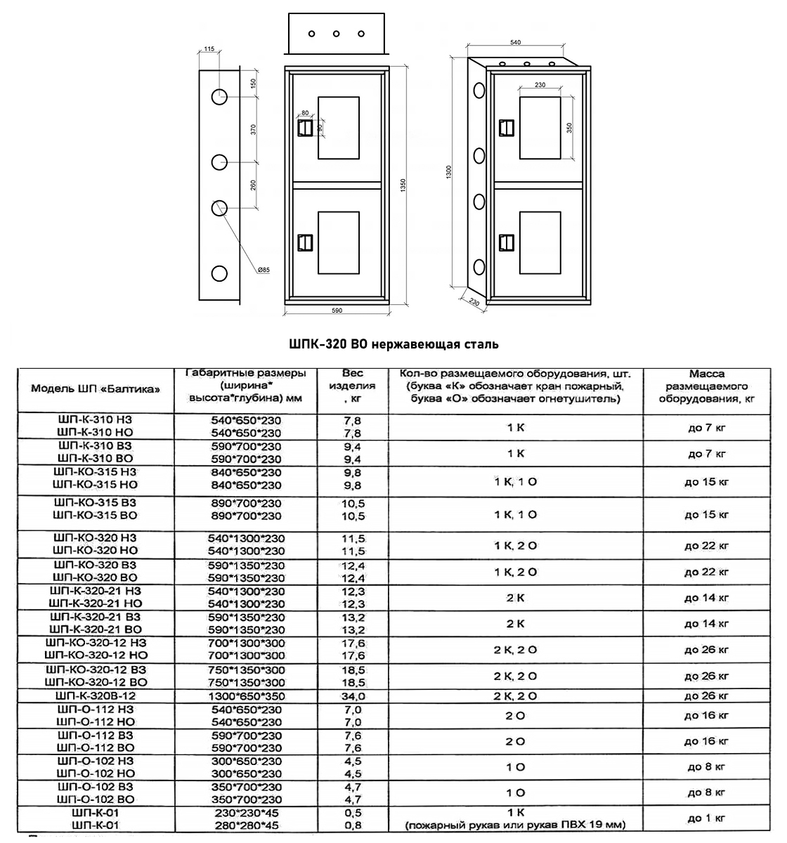 Шкаф пожарный Балтика-01 ШПК-320 ВО нержавеющая сталь