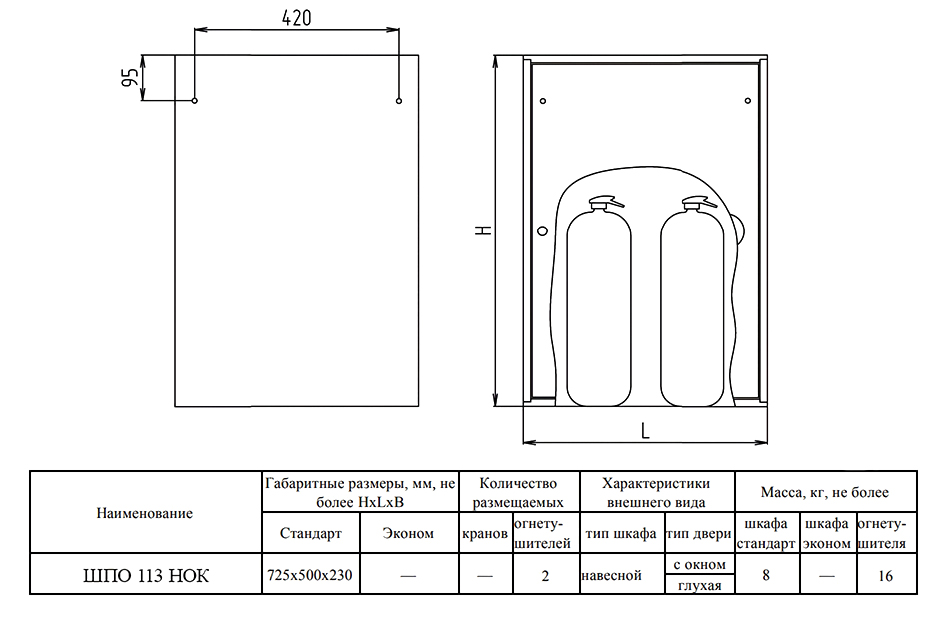 Размещение в пожарном шкафу2 огнетушителя