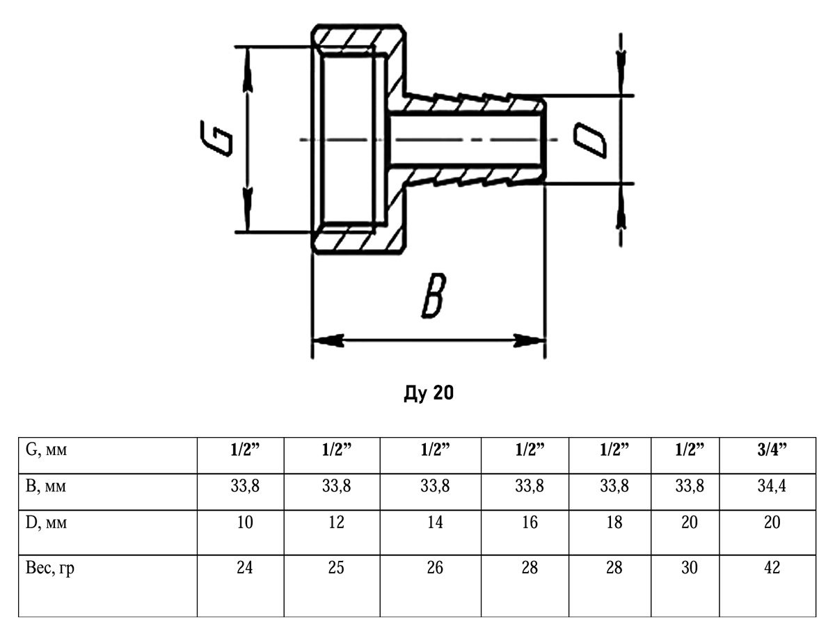 Штуцер для шланга VALFEX VF.654 ВР 3/4" Ду 20 Ру 40 никелированный латунный
