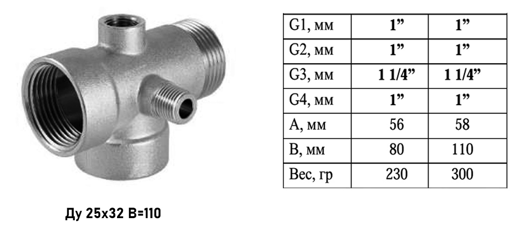Штуцер VALFEX VF.600 ВР-НР 1"x1 1/4" Ду 25x32 Ру 40 B=110 никелированный латунный