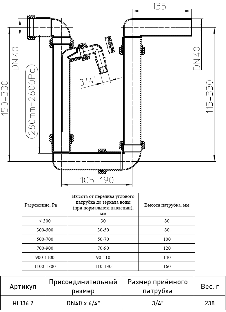 | Высота гидрозатвора | |