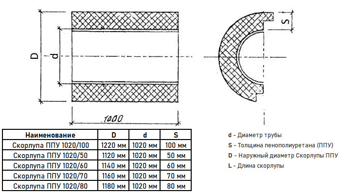 Скорлупа ППУ 1020/100 из пенополиуретана с покрытием из стеклопластика (1 метр)