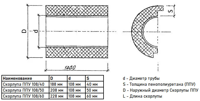 Скорлупа ППУ 108/60 из пенополиуретана с покрытием из оцинкованной стали (1 метр)