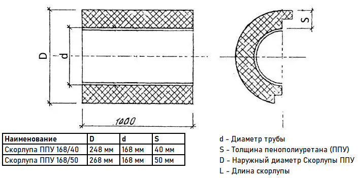 Скорлупа ППУ 168/40 из пенополиуретана с покрытием из армированной фольги (1 метр)