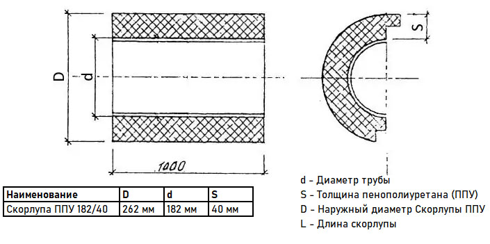 Скорлупа ППУ 182/40 из пенополиуретана с покрытием из армированной фольги (1 метр)