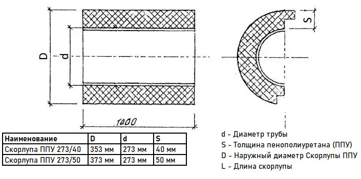 Скорлупа ППУ 273/50 из пенополиуретана без покрытия (1 метр)