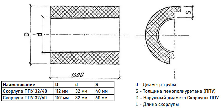 Скорлупа ППУ 32/60 из пенополиуретана с покрытием из оцинкованной стали (1 метр)