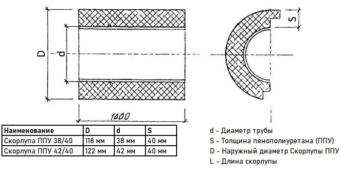 Скорлупа ППУ 38/40 из пенополиуретана с покрытием из оцинкованной стали (1 метр)