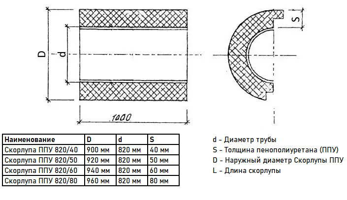 Скорлупа ППУ 820/40 из пенополиуретана с покрытием из армированной фольги (1 метр)