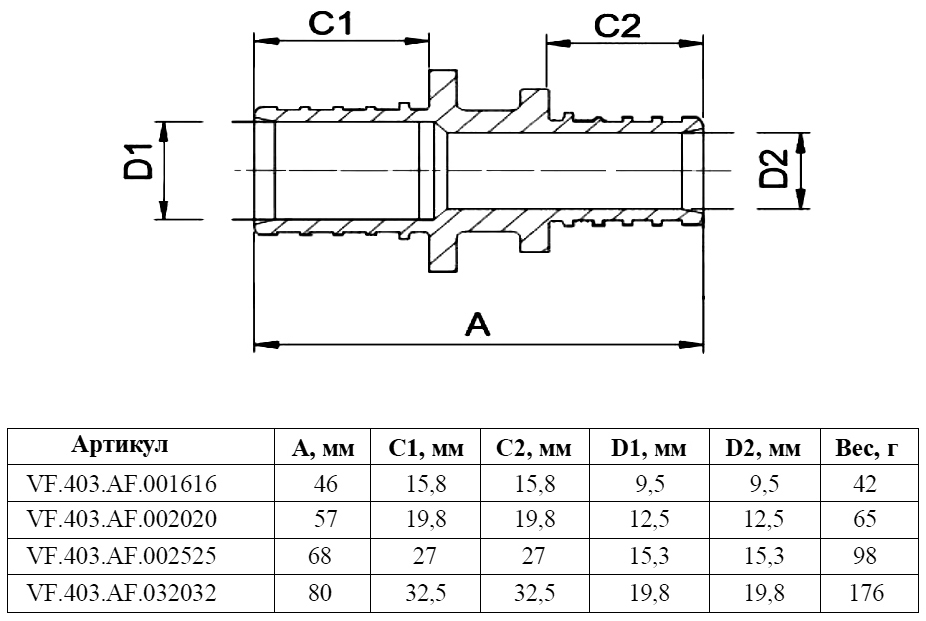Соединитель надвижной прямой VALFEX VF.403.AF Ду 16х16 Ру 16 латунный