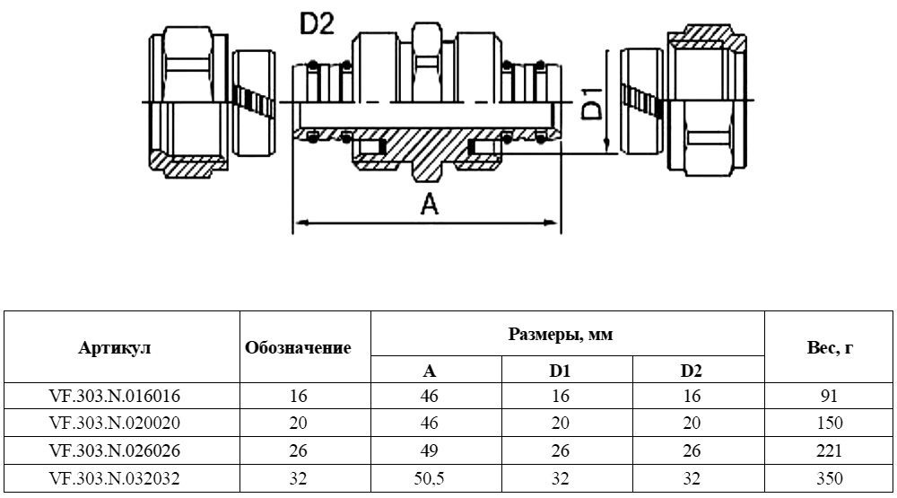 Соединитель обжимной VALFEX VF.303.N Ду 20 Ру 25 никелированный латунный
