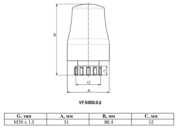 Термоголовка VALFEX VF.5000 ВР М30х1,5 DN 15 PN 10 жидкостная