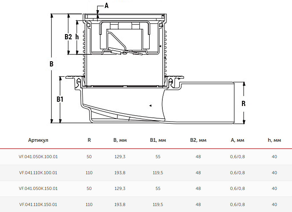 Трап горизонтальный VALFEX VF.041.050K.150.01 Ду 50 регулируемый с решеткой из нерж.стали