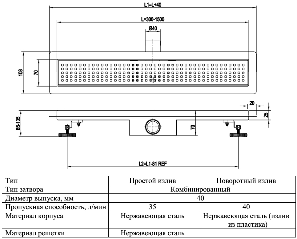 Трап линейный VALFEX PREMIUM VF.061.050K.600.06.PR Ду 40 комбинированный затвор