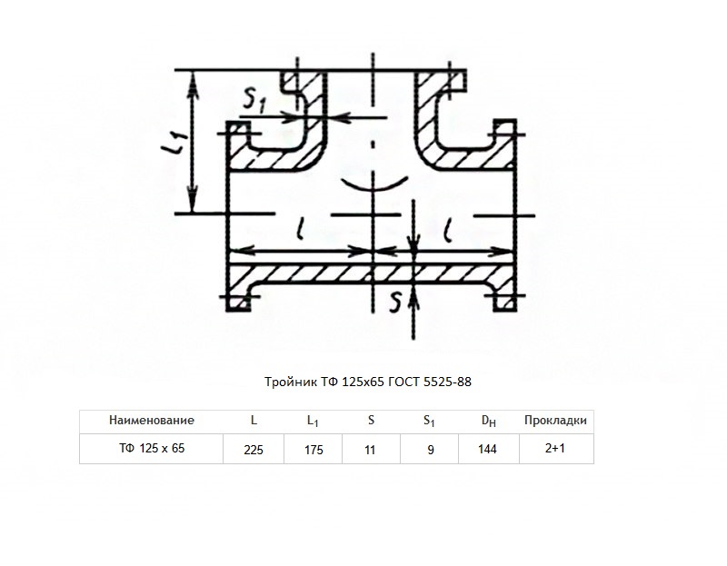 Тройник ТФ Ду 125х65 ВЧШГ ГОСТ 5525-88 чугунный фланцевый