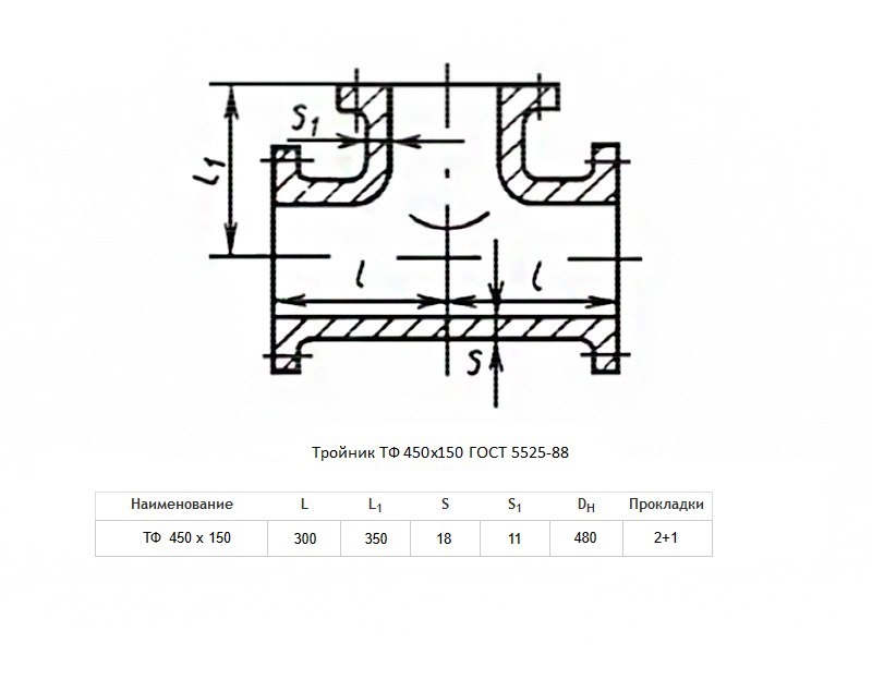 Тройник ТФ Ду 450х150 ВЧШГ ГОСТ 5525-88 чугунный фланцевый