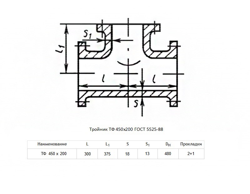 Тройник ТФ Ду 450х200 ВЧШГ ГОСТ 5525-88 чугунный фланцевый
