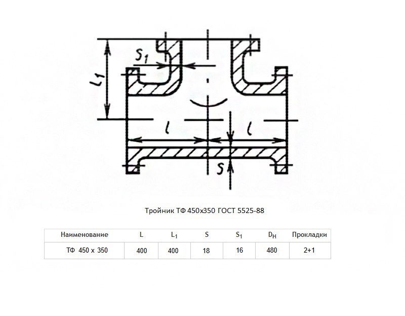 Тройник ТФ Ду 450х350 ВЧШГ ГОСТ 5525-88 чугунный фланцевый