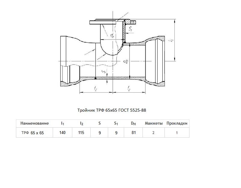 Тройник ТРФ Ду 65х65 ВЧШГ ГОСТ 5525-88 чугунный раструб-фланец
