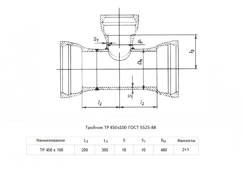 Тройник ТР Ду 450х100 ВЧШГ ГОСТ 5525-88 чугунный раструбный