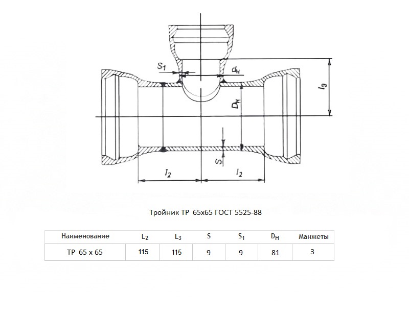 Тройник ТР Ду 65х65 ВЧШГ ГОСТ 5525-88 чугунный раструбный