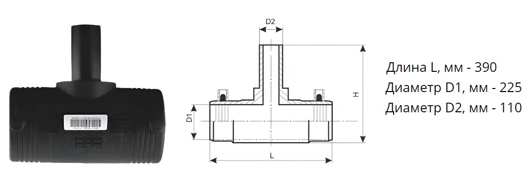 Тройник э/с 225х110 мм SDR 11 ПЭ100 редукционный электросварной