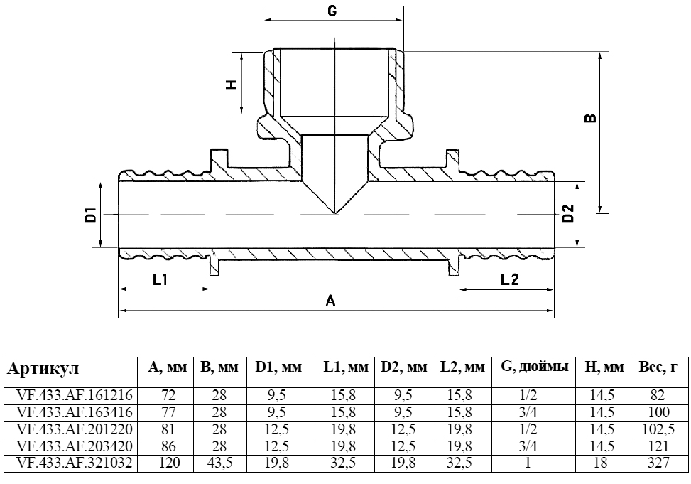 Тройник надвижной VALFEX VF.433.AF НР 1/2" Ду 20х20 Ру 16 переход на наружную резьбу, латунный