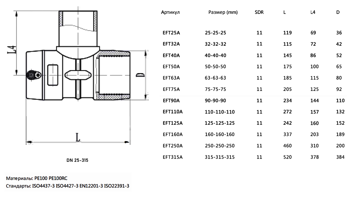 Тройник ПЭ100 э/с 50мм SDR 11 SMART-JOINT электросварной