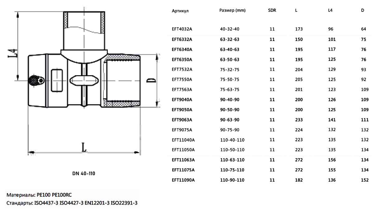 Тройник ПЭ100 э/с 75х40мм SDR 11 SMART-JOINT электросварной