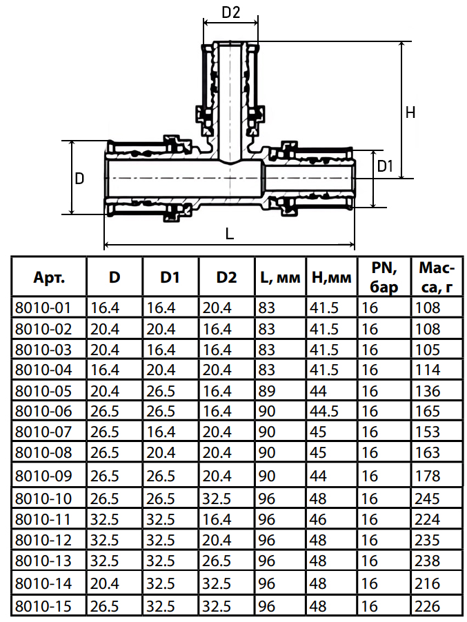 Тройник переходной латунный Aquasfera 8010 DN 20.4х32.5х32.5 PN 16 покрытие - никель, пресс, 8010-14