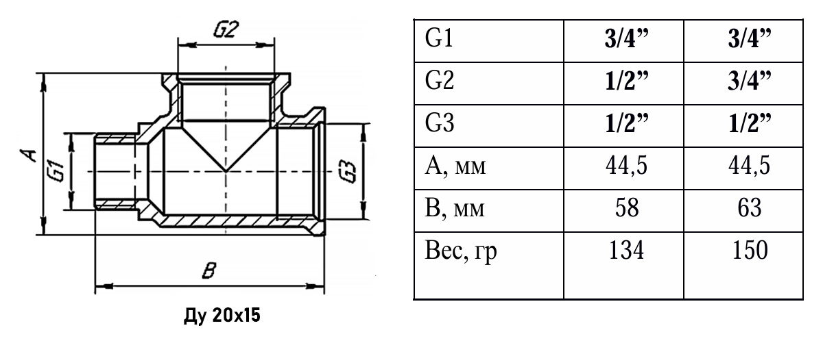 Тройник переходной VALFEX VF.134 ВР-НР 3/4"x3/4"x1/2" Ду 20x20x15 Ру 40 латунный