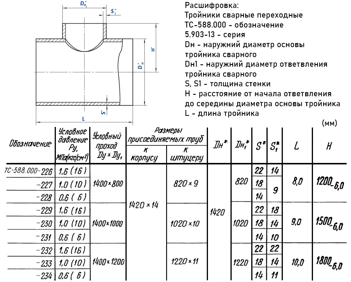ИсполнениеТройники сварные ТС-588.000 переходные стальные из бесшовных или прямошовных труб