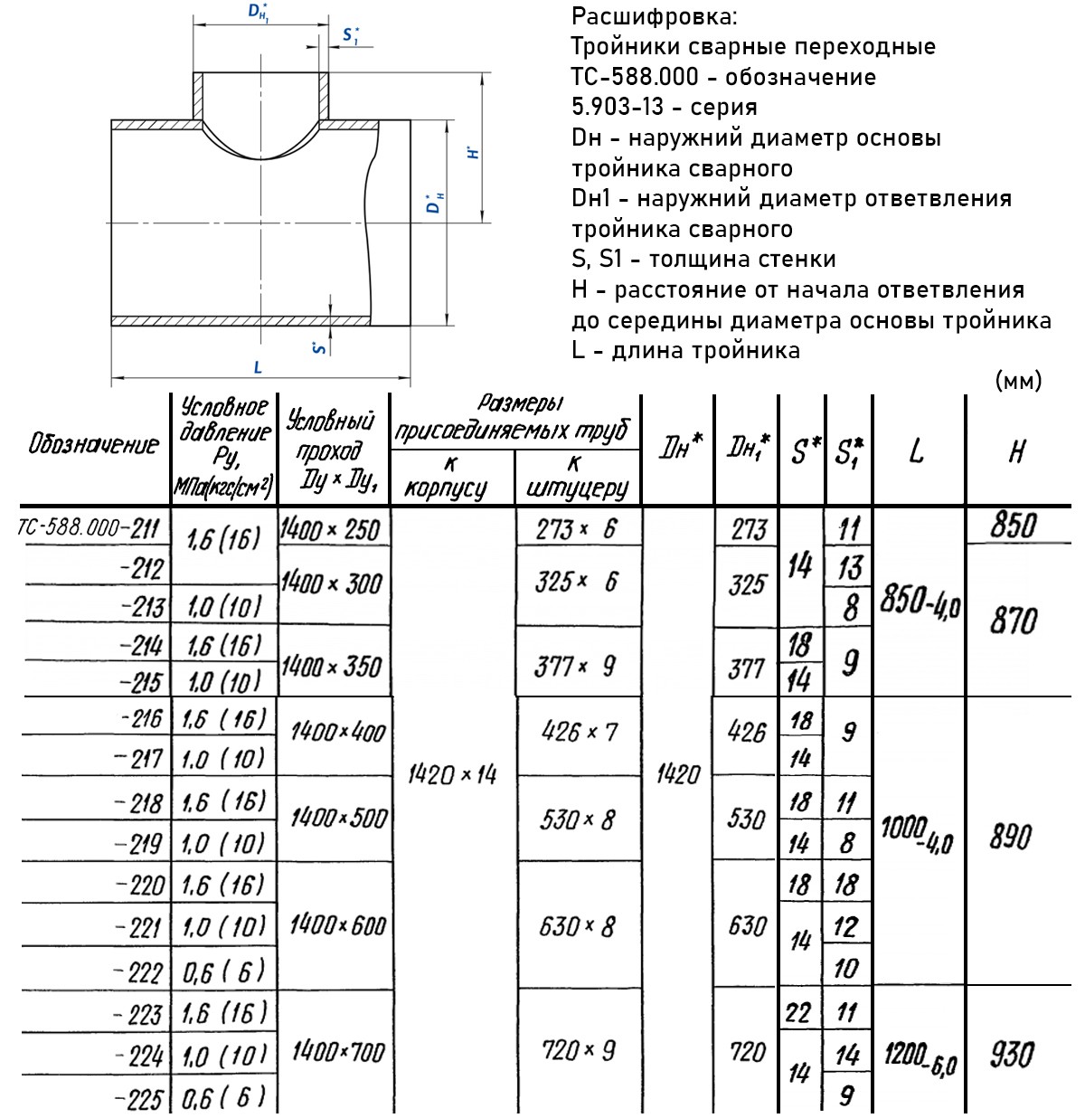 Тройник стальной 1420x14-426х7 1 ТС-588.000 серия 5.903-13 переходный сварной