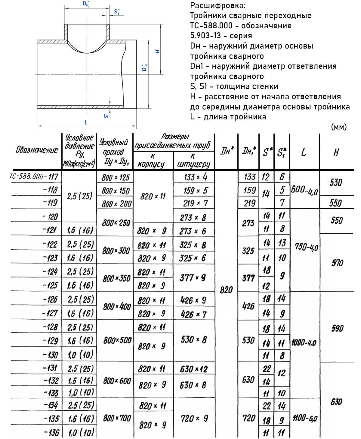 ИсполнениеТройники сварные ТС-588.000 переходные стальные из бесшовных или прямошовных труб